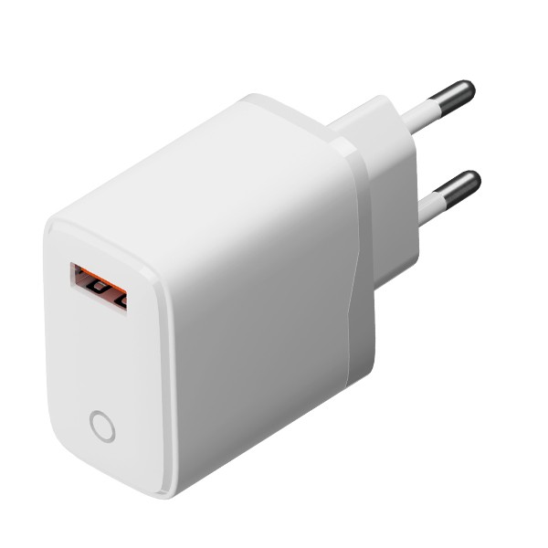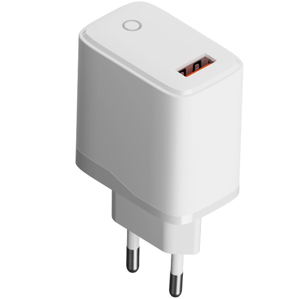 30W USB-A single-port fast charger with 5V/3A, 9V/3A, 12V/2.5A output. Compatible with QC3.0 protocol for Xiaomi, Samsung, Huawei phones (device-dependent). Auto-voltage adjustment and built-in OVP/OCP/SCP protections. Flame-retardant casing for home/office use.