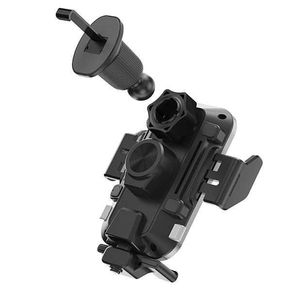 15W Qi-certified wireless car charger with auto-clamping air vent mount. One-hand operation, secure even on bumpy roads. Fast charging for iPhone 15/Samsung S24 with temperature control and FOD protection. 360° adjustable ball head fits 99% car vents. Plug & play installation.