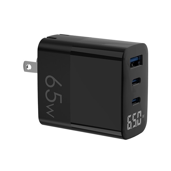 65W GaN Fast Charger with LED Display - Foldable (US plug ), Compact, PD & QC 3.0 for iPhone, Samsung, MacBook